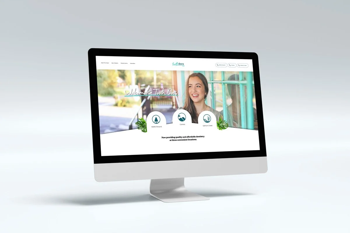 A new dental office was looking to emerge into a saturated market and needed help finding its identity and voice. Tooth Docs wanted to have a friendly and nurturing energy to match their mission of providing quality and affordable dental care. I provided them with a logo, brand guide, website, stationery, signage and more. Tooth Docs now has three very successful locations in Southwest Washington.